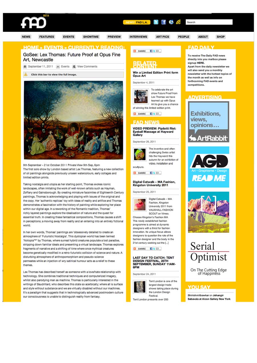 Lex Thomas: Future Proof. (Solo Show) Opus Gallery, Newcastle. |
